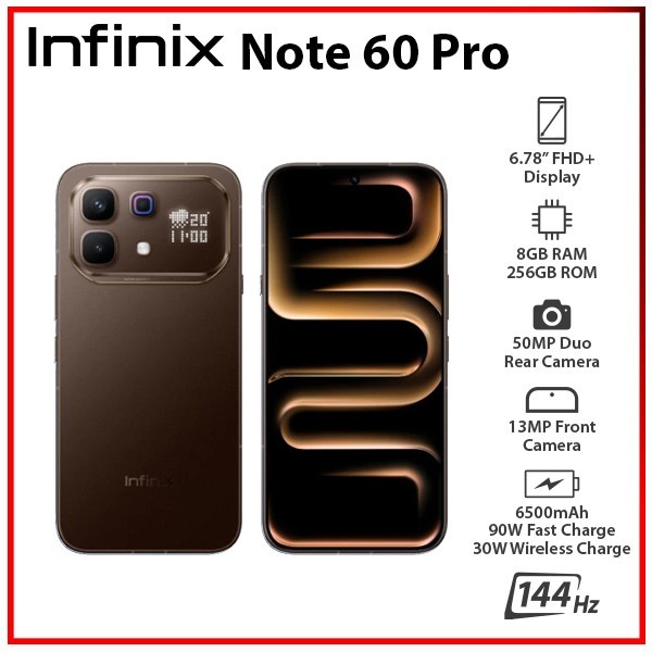 Details: Infinix Note 60 Pro 5G BROWN 8GB+256GB Dual SIM Unlocked Android Mobile Phone
