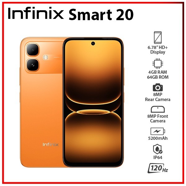 Details: (New) Infinix Smart 20 4GB+64GB ORANGE Dual SIM Unlocked Android Mobile Phone