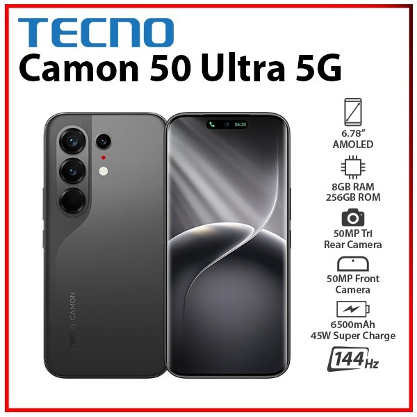 Details: TECNO Camon 50 Ultra 5G 8GB+256GB BLACK Dual SIM Unlocked Android Mobile Phone